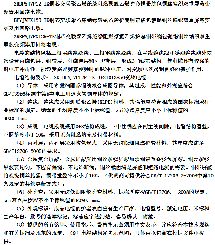 安徽天長中盛變頻電纜BPYJVP12R-TK 3*185+3*25