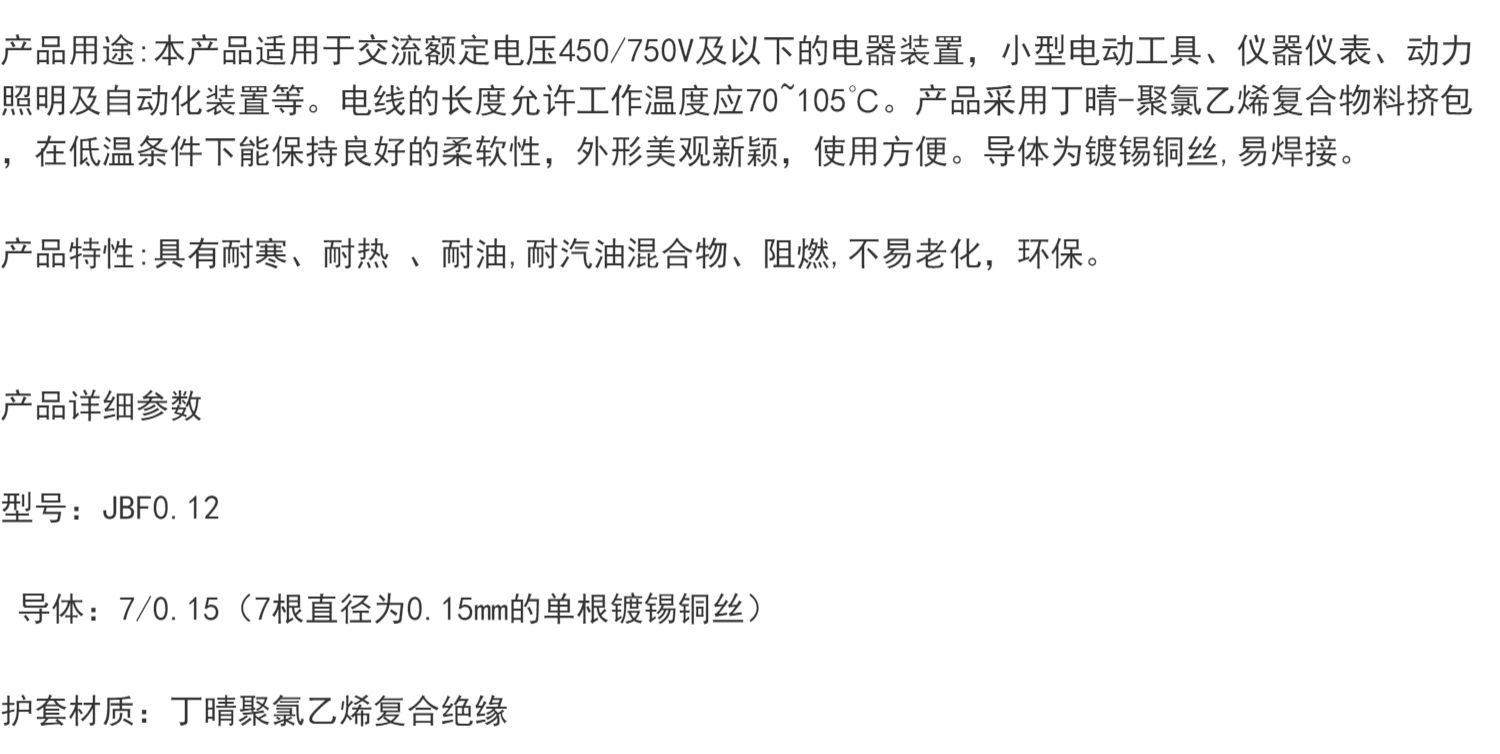 - 產品名稱:安徽天長市電機引接線電機引接電纜JBF 1.5