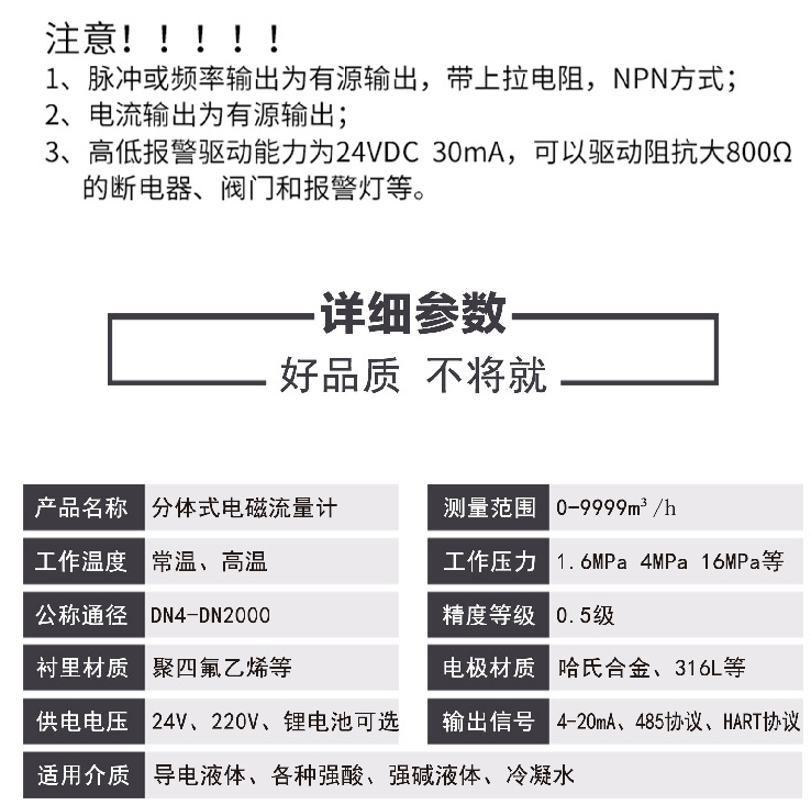 - 產品名稱:分體式電磁流量計污水管道式傳感器水流量計量表DN50/80/100