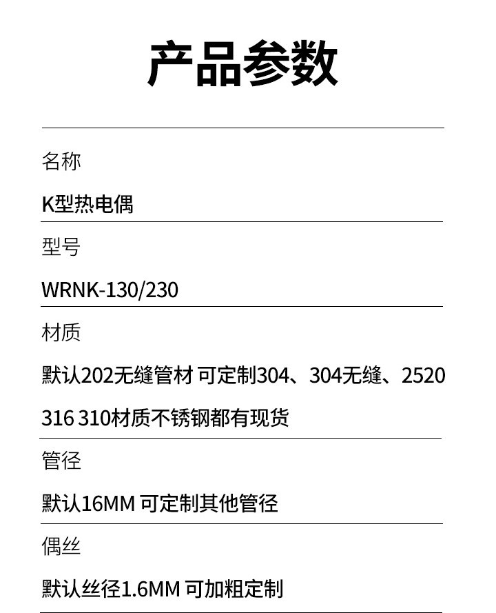 WRN-130長度300mm,WRN-130長度400mm,WRN-130長度500mm,WRN-130長度600mm,WRN-130長度700mm,WRN-130長度800mm,WRN-130長度900mm,WRN-130長度1000mm,WRN-130長度1200mm,WRN-130長度1500mm,WRN-230插入長度300mm,WRN-230插入長度400mm,WRN-230插入長度500mm,WRN-230插入長度600mm,WRN-230插入長度700mm,WRN-230插入長度800mm,WRN-230插入長度900mm,WRN-230插入長度1000mm,WRN-230插入長度1200mm,防爆型,WRN-230陶瓷型,非標(biāo)定制