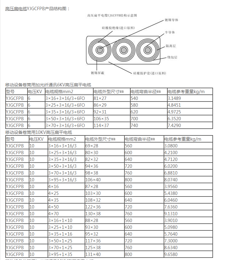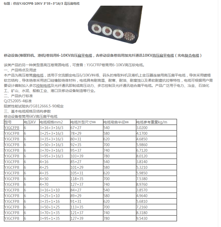 - 產品名稱:高壓扁電纜YJGCFPB-10KV 3×35+3×16/3+(10*2.5+12FO)帶光纖